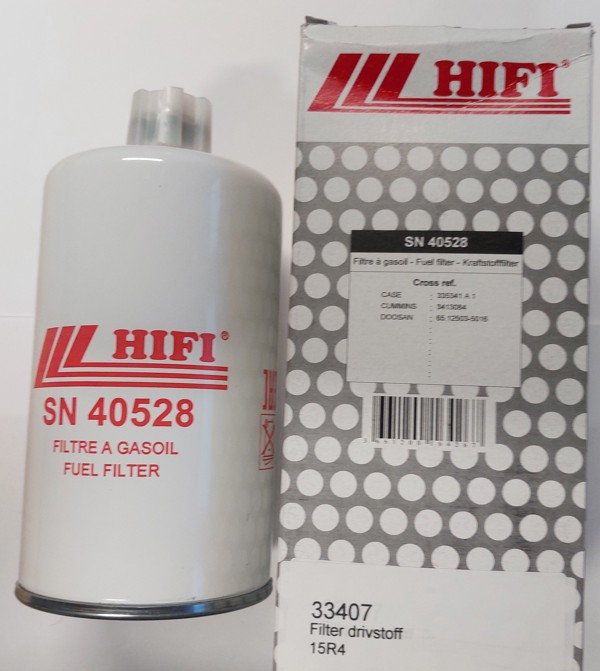 Bränslefilter från Wix filters. Kommer sedemera ersättas utav HiFi SN40528 Ersätter Baldwin 1258. Passar bla : Cummins N14M,C350,C350 CASE Fiat W270 Art.nr:Wix 33407 alt HiFi SN40528