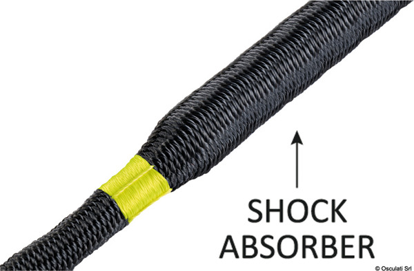 Dubbelflätad lina tillverkad av 100 % höghållfast polyester med elastisk ryckdämpare inuti.