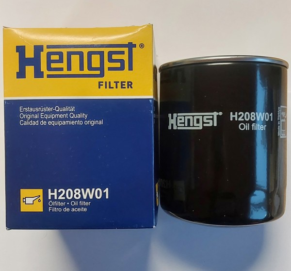 Oljefilter Hengst H208W01 Gängor 3/4-16 UNF Höjd 137mm Bredd 106.0mm Packning innermått 62,5mm Packning yttermått 71,5mm Ref: Baldwin BT267 Passar följande motorer: Iveco Claas Fiat Lamborghini